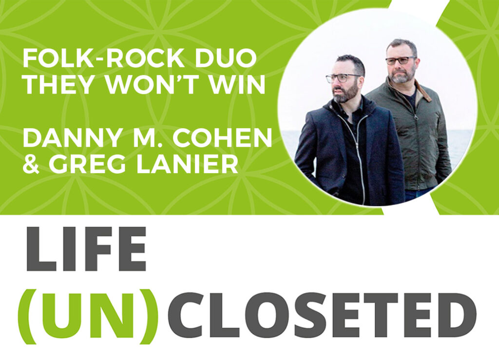 Danny M. Cohen and Great Lanier of “They Won’t Win,” met through an organic circumstance at a dinner. It all started with noticing a guitar in the room and from there the relationship blossomed into the two becoming music husbands, producing folk-rock songs that take on dark subjects like partner abuse, the LGBTQ struggle, and loss. Their debut album Lost at Sea, is out and making a splash and having immediate impact with people from all walks of life. Touching, endearing, and soulful, Lost At Sea metaphorically paints the picture that we are all lost at sea in so many aspects of life…both good and bad.